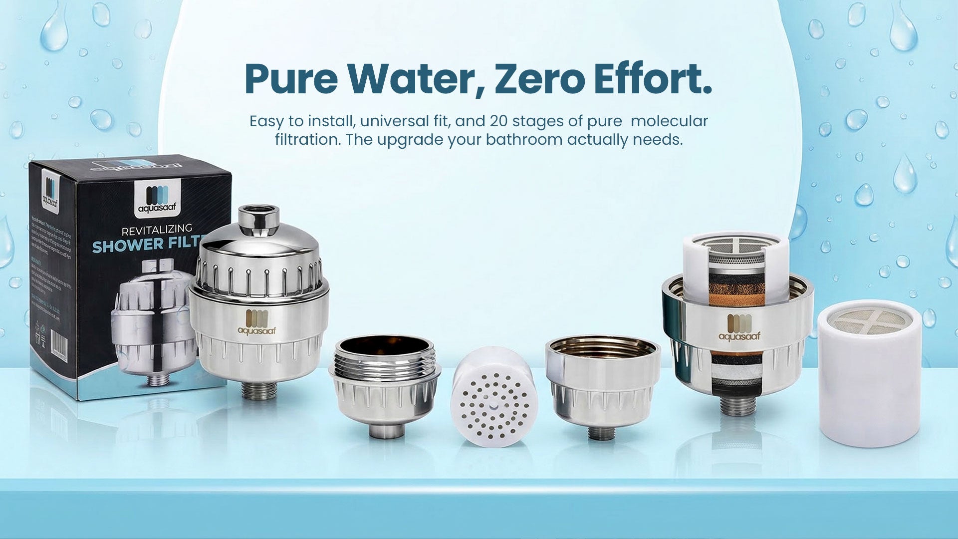 Stop showering in harsh chemicals! AquaSaaf eliminates 99% of chlorine and heavy metals that cause hair fall and dry skin. Choose the protection that fits your needs: